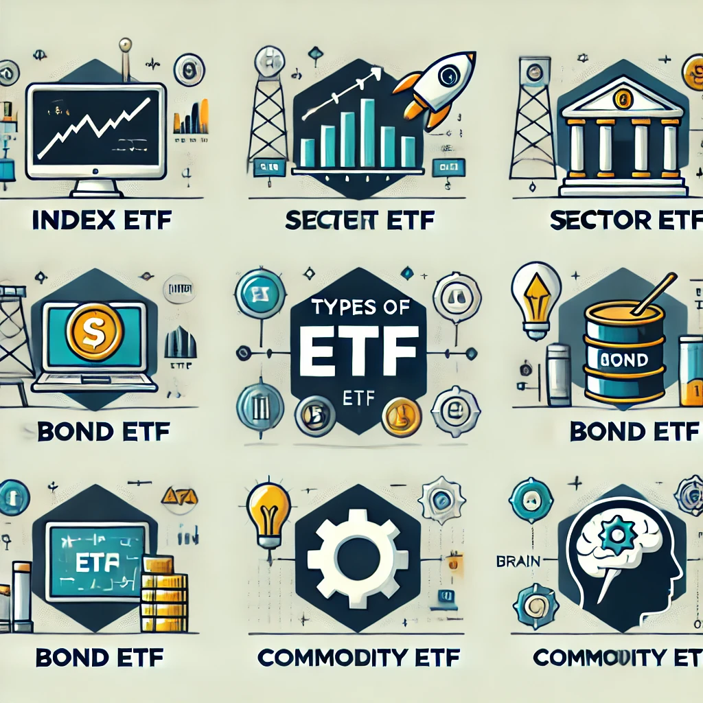 ETF는 추종하는 자산이나 전략에 따라 다양한 종류로 나눌 수 있어요. 대표적인 ETF 유형은 다음과 같습니다:
